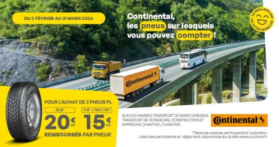 Du 2 juin au 31 juillet 2025, pour l’achat de 2 pneus poids lourds Continental, profitez de 25€ HT remboursés […]