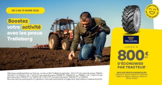 Du 2 au 31 mars 2026, boostez votre activité avec les pneus de la marque Trelleborg. Jusqu’à 800€ HT d’économies […]