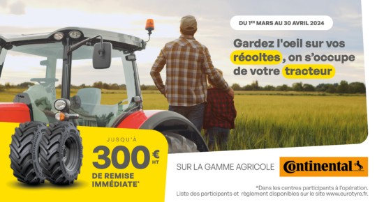 Du 1er Mars au 30 Avril 2024, profitez de l’offre jusqu’à 300€ HT* de remise immédiate sur la gamme Agricole Continental. Détail des […]