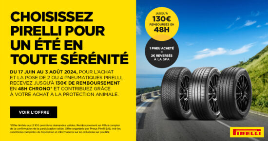 Du 18 mars au 27 avril 2024, pour l’achat et la pose de 2 ou 4 pneumatiques Pirelli, recevez jusqu’à […]